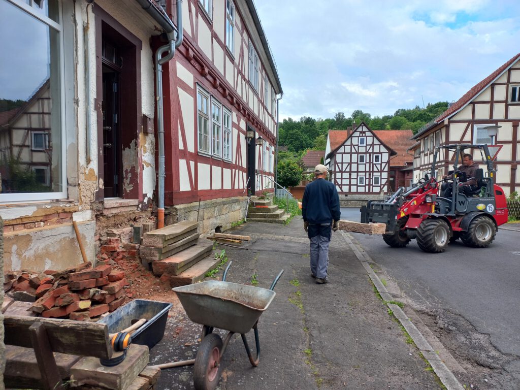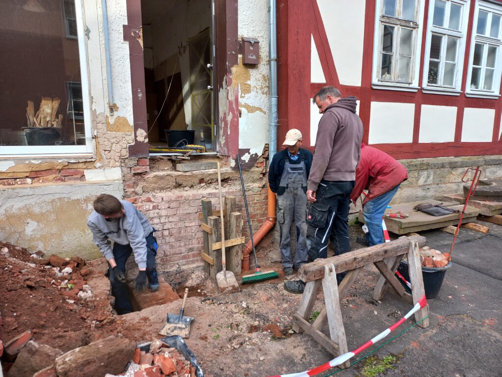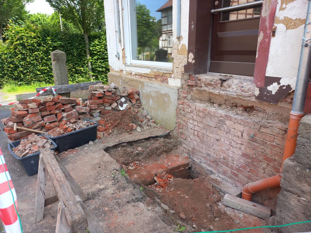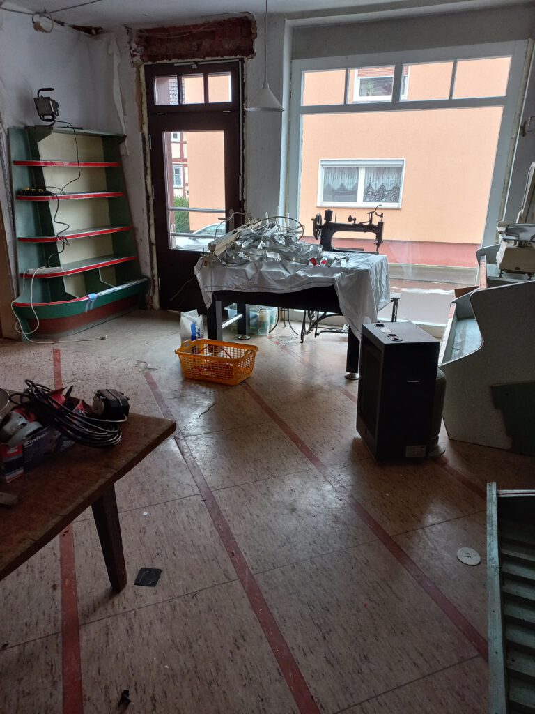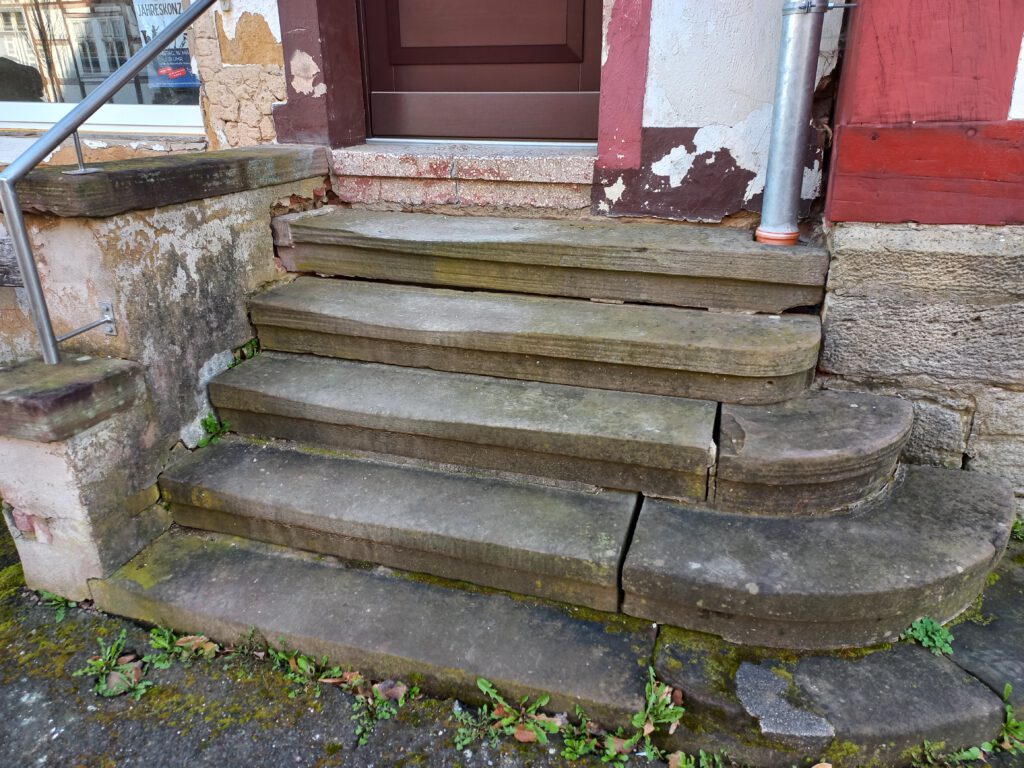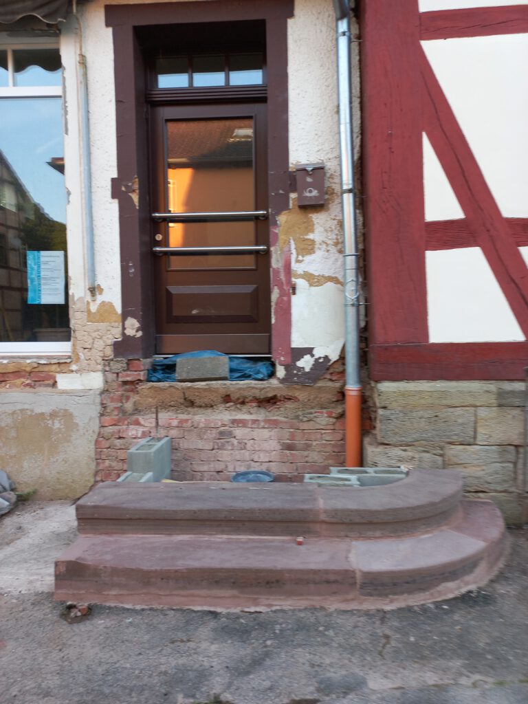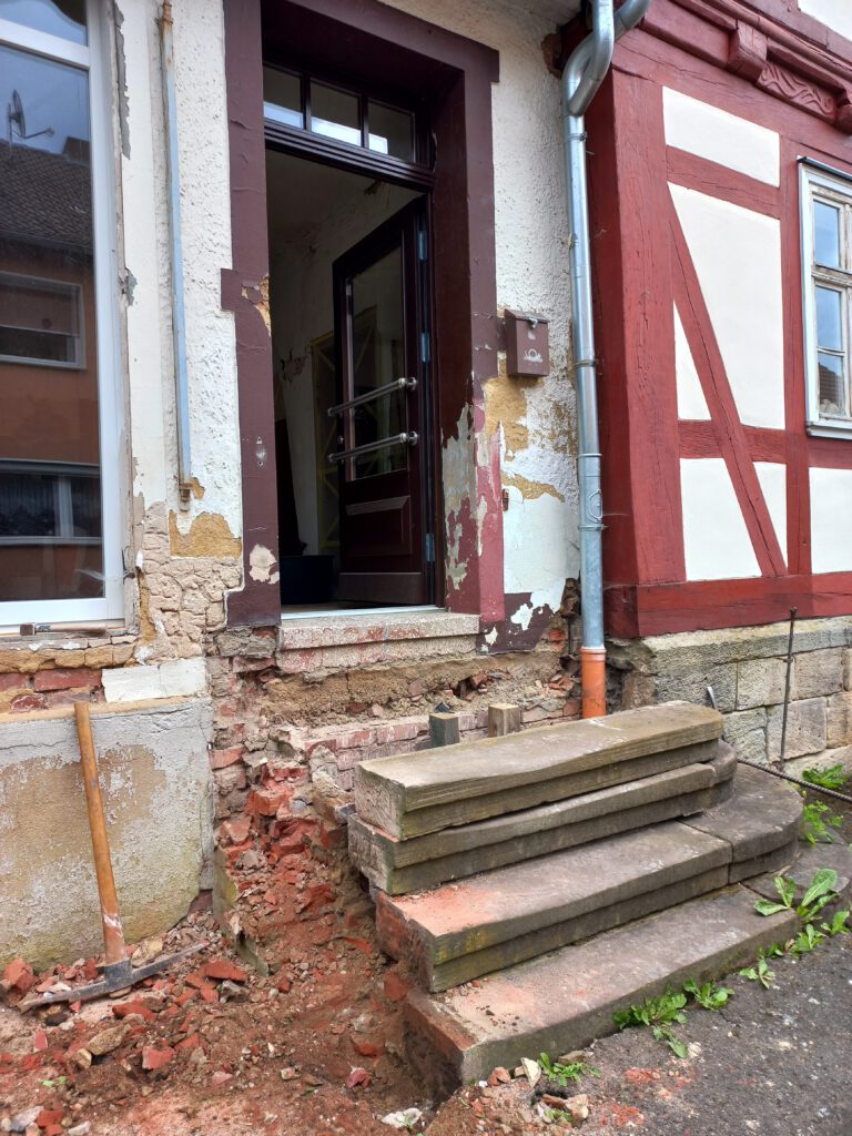 Sanierung Treppenaufgang zum ehemaligen und zukünftigen Laden, Fertigstellung im Sommer 2024